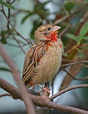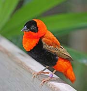 The Orange Bishop or the Northern Red Bishop is a Weaver that was formally regarded as a subspecies of the Southern Red Bishop. They are now considered two separate species. The Orange Bishop is found in the southern half of Africa.