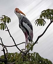 The Painted Stork is found in the wetlands of the Indian subcontinent and extending into Southeast Asia. They colonially nest in trees. They mostly eat fish but will also eat frogs, reptiles, crustaceans, and insects.