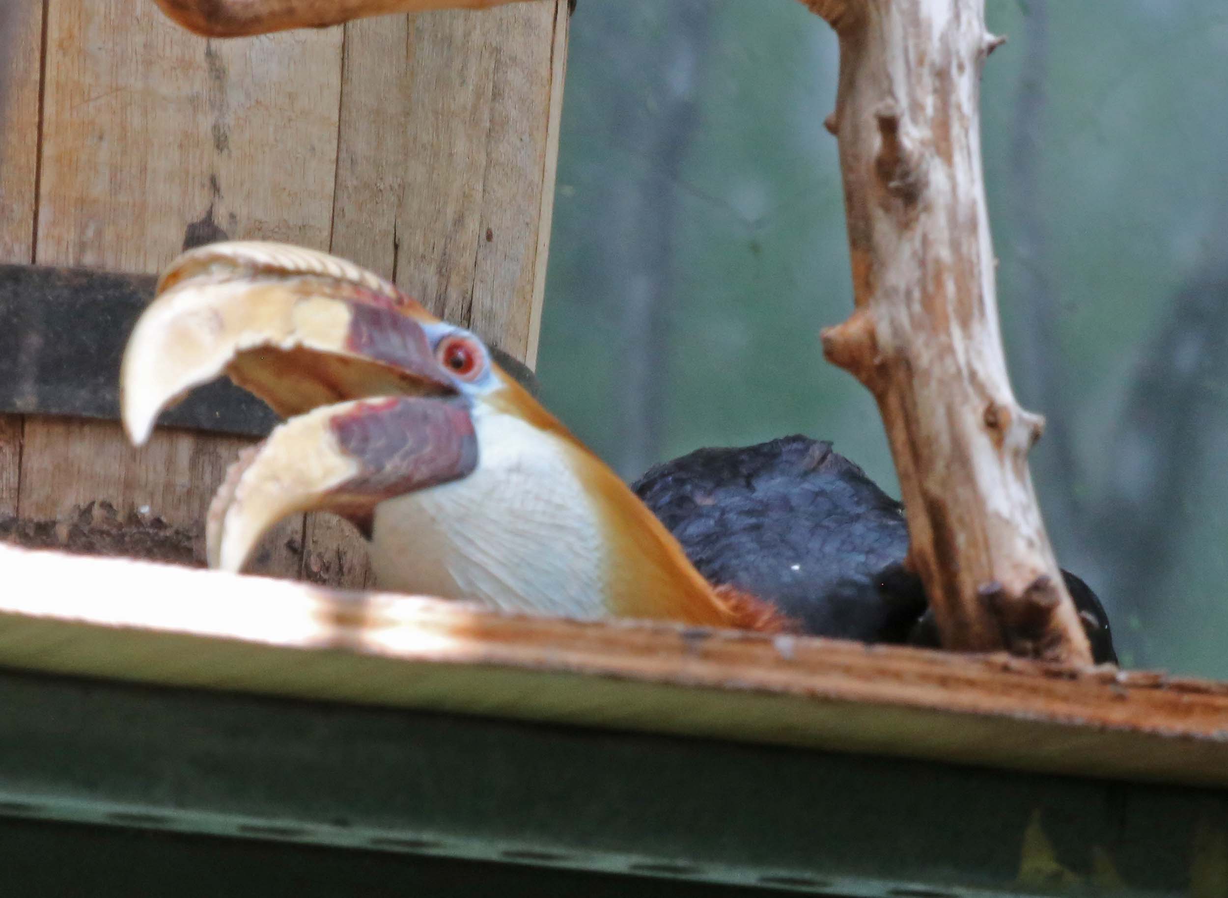 The Papuan Hornbill or Blyth's Hornbill and are found in the Moluccas, New Guinea, the Bismarck Archipelago and the Solomon Islands. They are sexually dimorphic. The male has a black body, rufous colored head, white throat and a white tail. Bill is pale yellow with a brown base. Females are black with a white throat and tail. Their bill is also pale yellow with a smaller brown base.