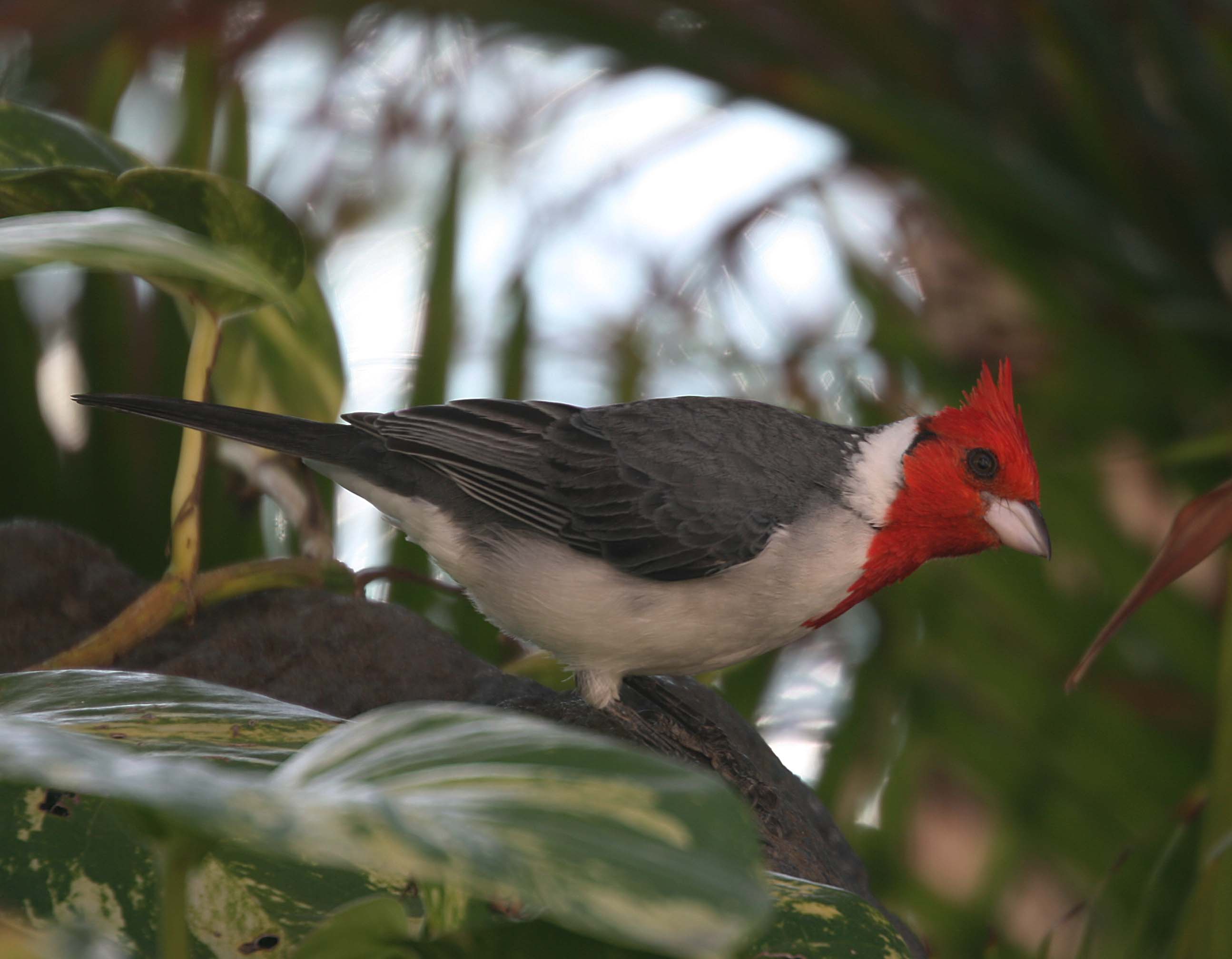 The Red-crested Cardinal is also known as the Brazilian Cardinal. It was imported to the Hawaiian Islands and I have seen it on both Oahu and Kauai. They were imported from South America where they are found in Brazil, Bolivia, Paraguay, Argentina and Uruguay. They eat seeds, plant matter, insects and fruit.