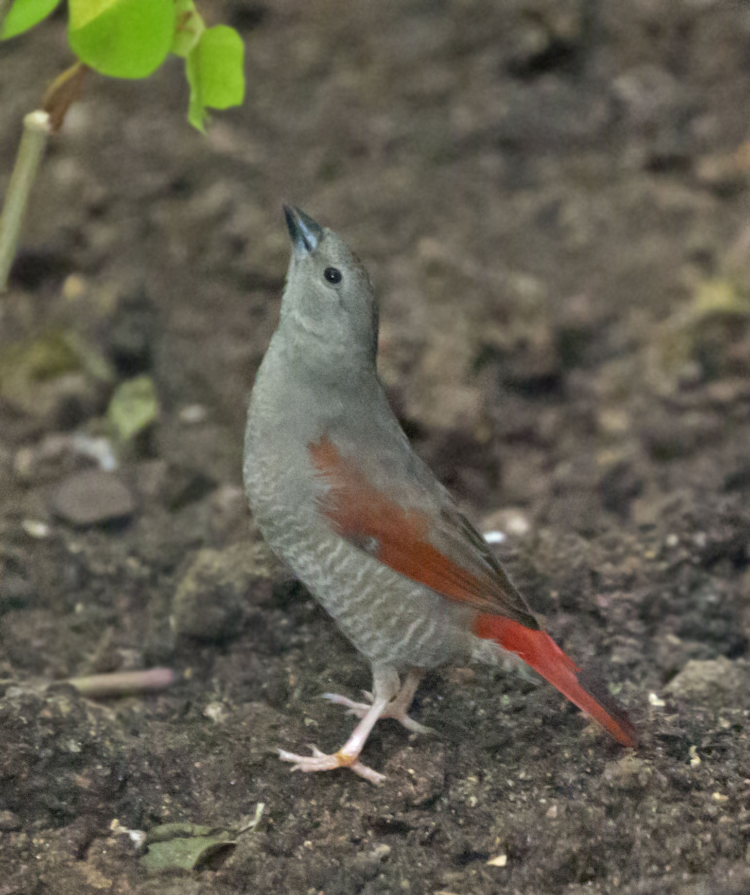The Red-winged Pytilia is found in sub-Saharan Africa. Diet is small grass seeds and termites.