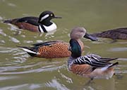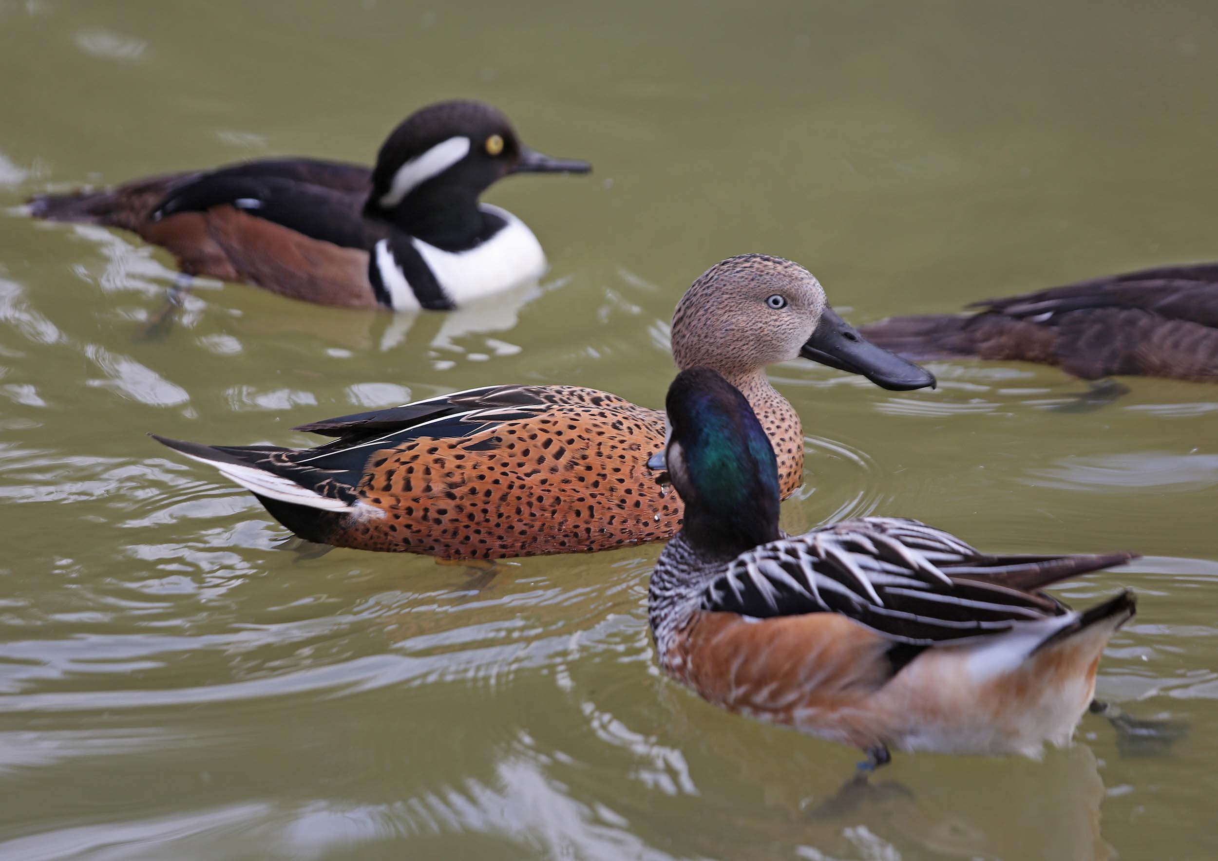 The Red Shoveler is a species of dabbling duck found in southern South America. In winter the southernmost birds migrate north to Brazil and Peru. They are sexualy dimorphic. They use their beak to filter water or mud to obtain tiny aquatic invertebrates. They also eat seeds and other parts of aquatic plants.