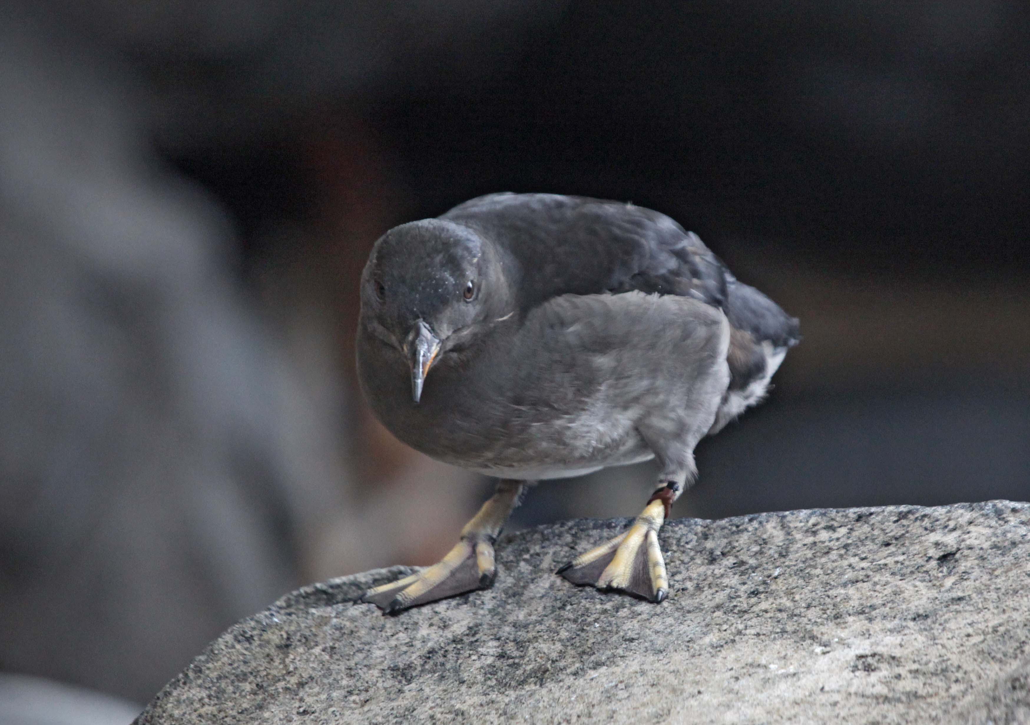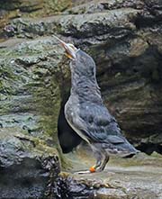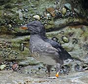 Rhinoceros Auklets are also called the Rhino Auklet, Horn-billed Puffin, Unicorn Puffin or Rhinoceros Puffin. They are found in the north Pacific. They breed from the Channel Islands in California to the Aleutian Islands in Alaska as well as Japan, North Korea and Sakhalin Island in Asia. During breeding season, Rhinoceros Auklets have a vertical white projection at the base of their orange bill and two thin white plumes on their face.