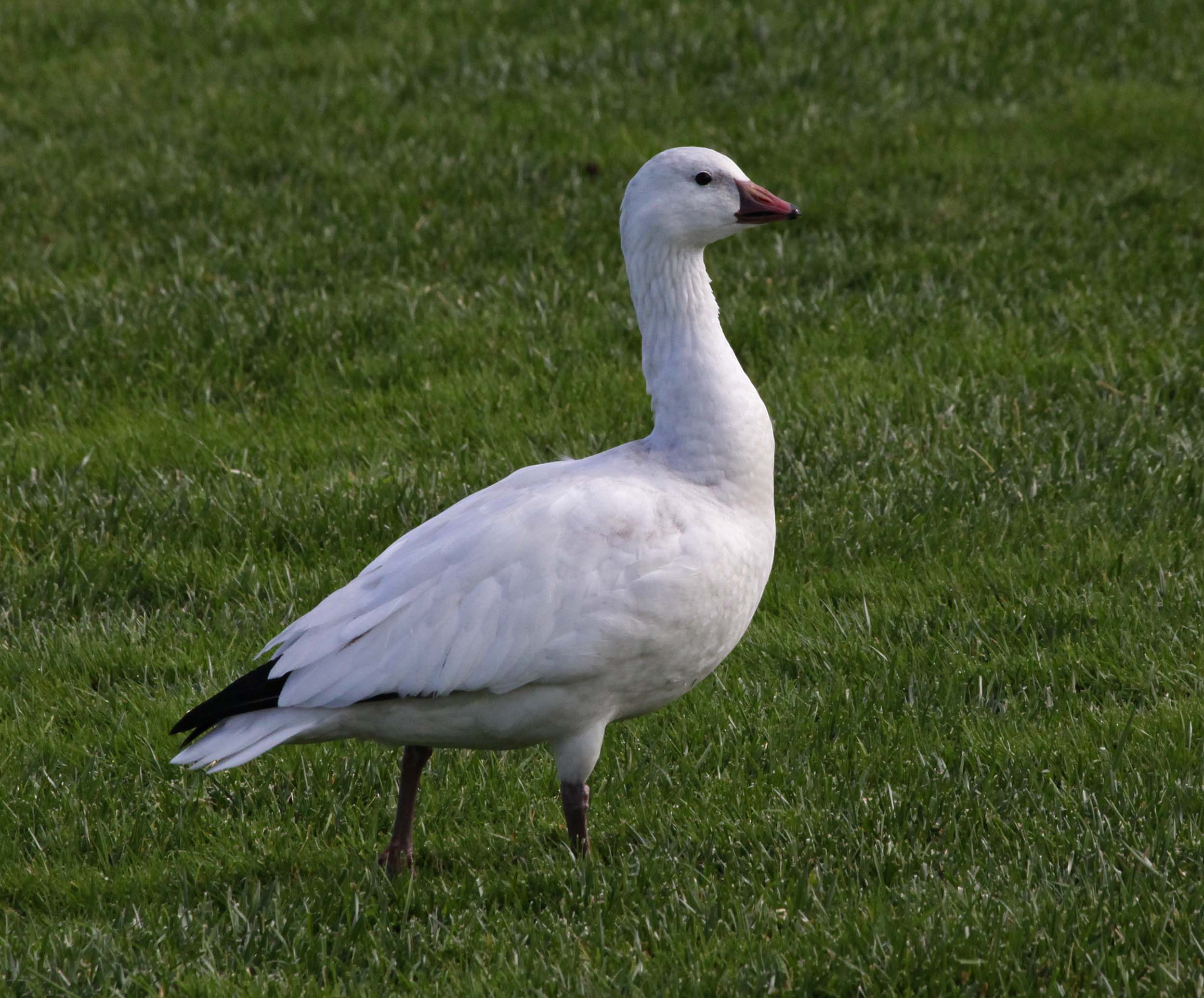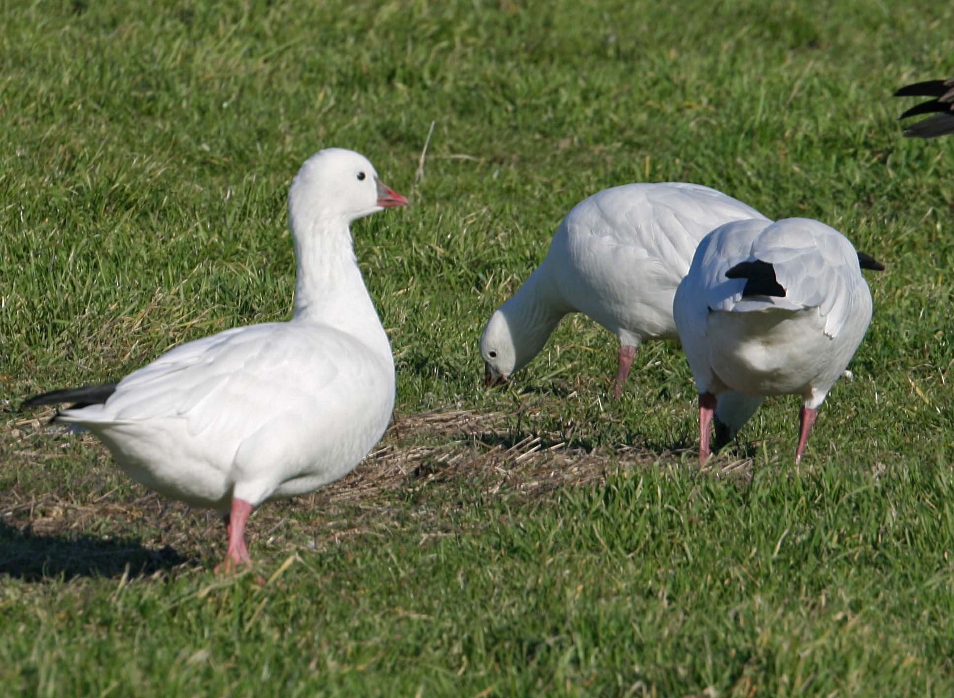 The Ross's Goose is similar looking to the Snow Goose, but smaller in size and bill. They are a North America goose. The sexes look alike with the male slightly larger. They eat grasses, sedges, legumes, and domestic grains.
