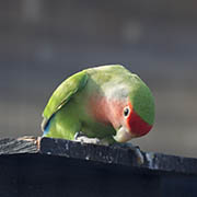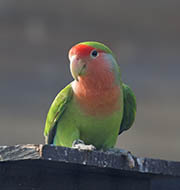 The Rosy-faced Lovebird is also known as the Peach-faced Lovebird and the Rosy-collared Lovebird. They are native to arid regions in southwestern Africa such as the Namib Desert. Both sexes look identical. They mainly eat seeds and can be a pest in grain fields.