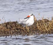 The Royal Tern is found in North America and South America along the southern Pacific and Atlantic coasts. They are also found on the coast of West Africa and Europe. They are a large tern like the Caspian Tern, but their bill is less bulky. They have a short, forked tail.