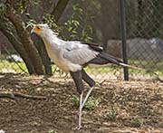 The Secretarybird is considered a bird of prey but is in its own family. They are found in sub-Saharan Africa from Senegal to Somalia and south to the Cape of Good Hope. The male and female look similar although the male has longer head plumes and tail feathers. They are not considered migratory but will follow food sources.