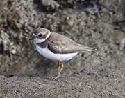 The Semipalmated Plover has a short bill and yellow-orange legs.