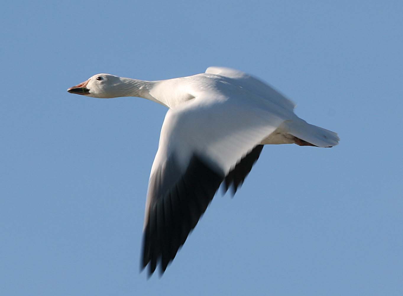 As with Greater White-fronted Geese, the Snow Goose can be found in the thousands at the Sacramento Wildlife Refuge as they migrate. They are similar to Ross's Geese but they are larger and the bill is different. They are a North American goose.
