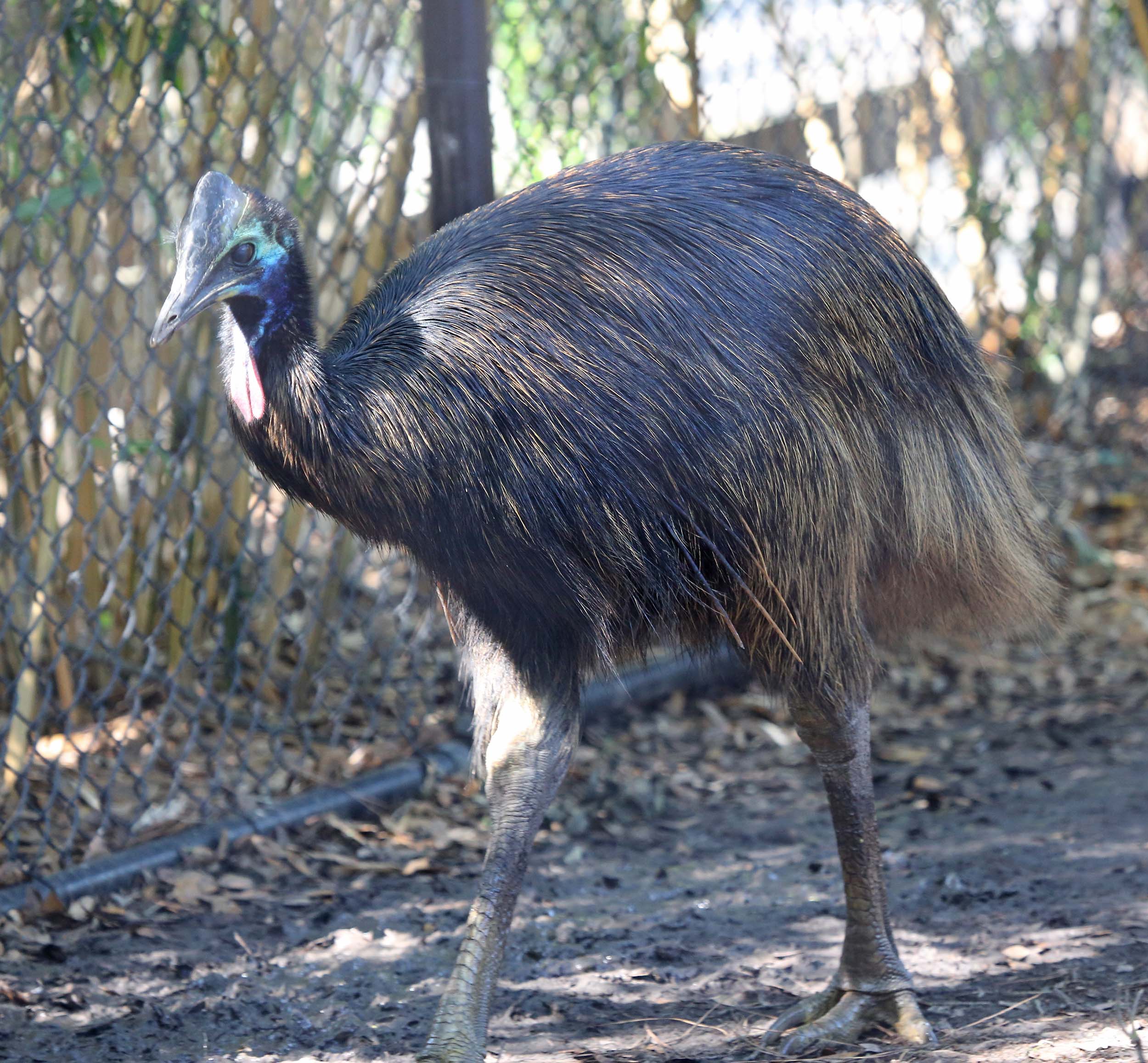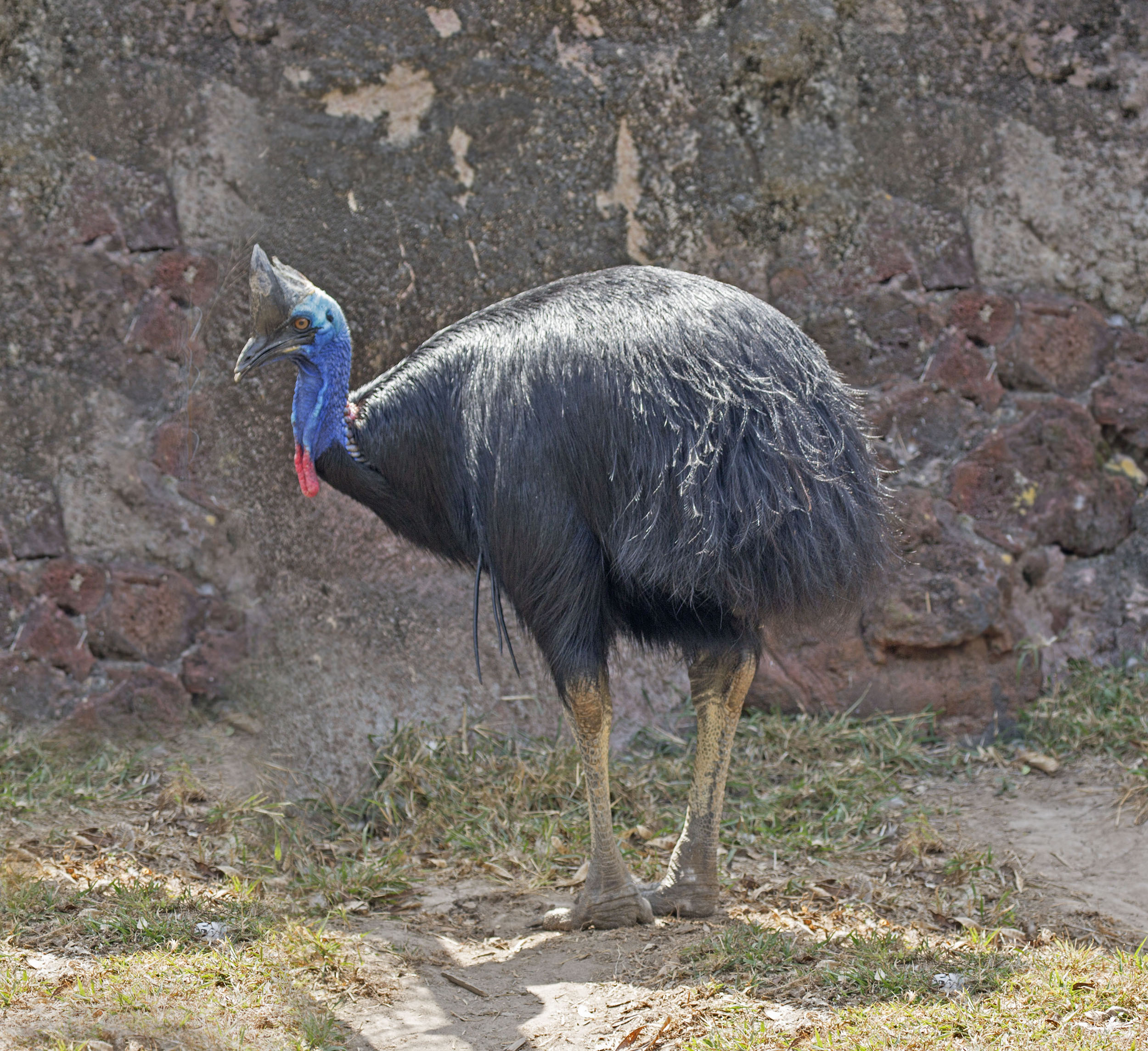 The Southern Cassowary is frequently known as the Double-wattled Cassowary. Other names include: Australian Cassowary and Two-wattled Cassowary. The male and female look similar but the female is larger and heavier.