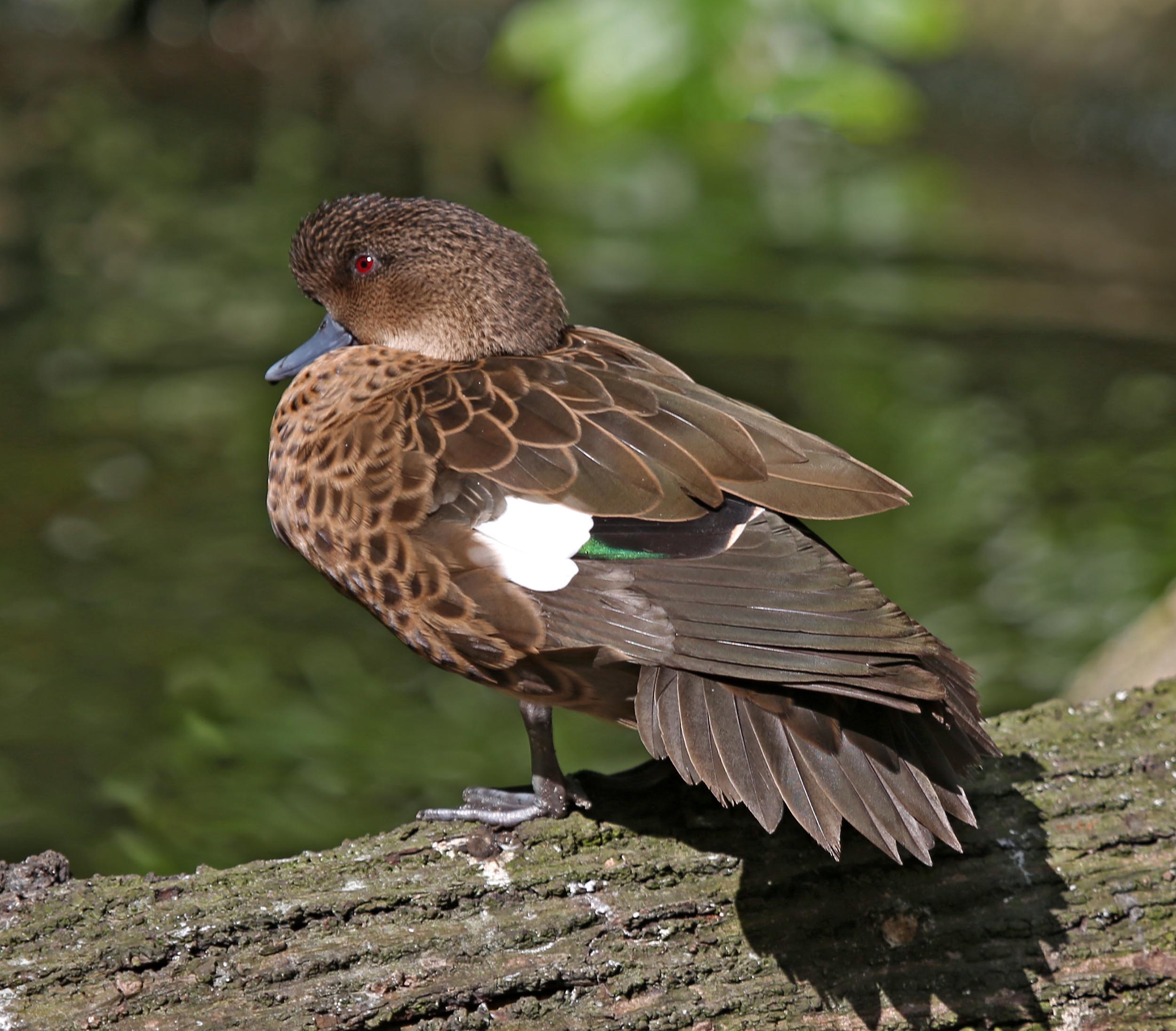 Males and females look similar but the female is slightly smaller with maybe a duller iris. Diet is probably similar to Anas gracilis which includes seeds, aquatic plants, grasses and sedges.