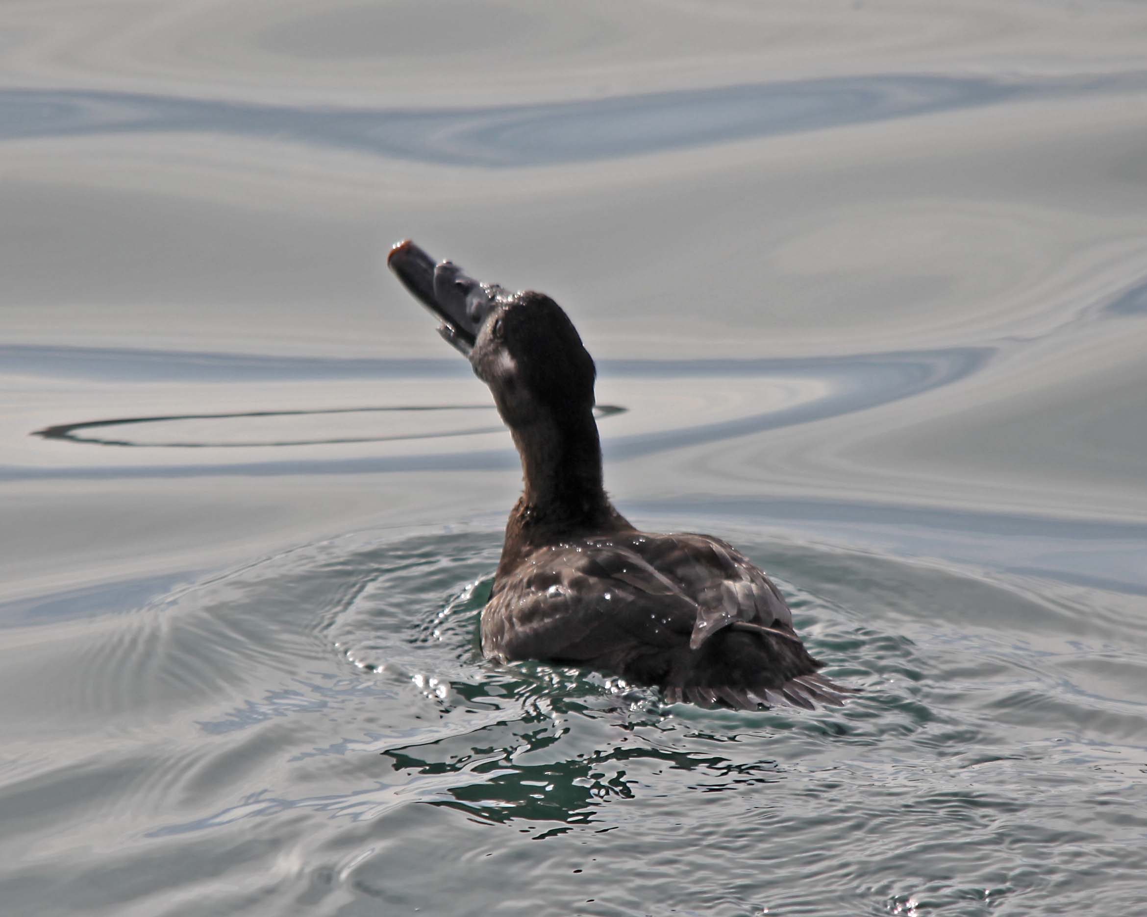 Surf Scoters eat mostly Aquatic Invertebrates and fish. They eat lesser quantities of green plant matter. Scoters breed in Canada and Alaska and are a winter visitor to the Bay area.