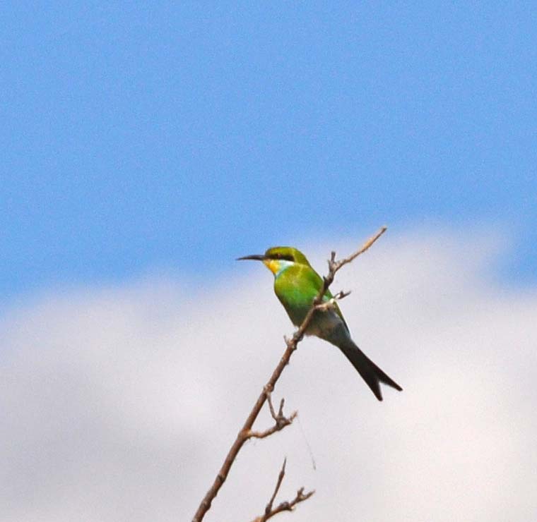 The Swallow-tailed Bee-eater is found in sub-equatorial Africa. The forked tail and coloration make this bird easily identified. The sexes are similar. They nest in small colonies in sandy banks or other flat ground.
