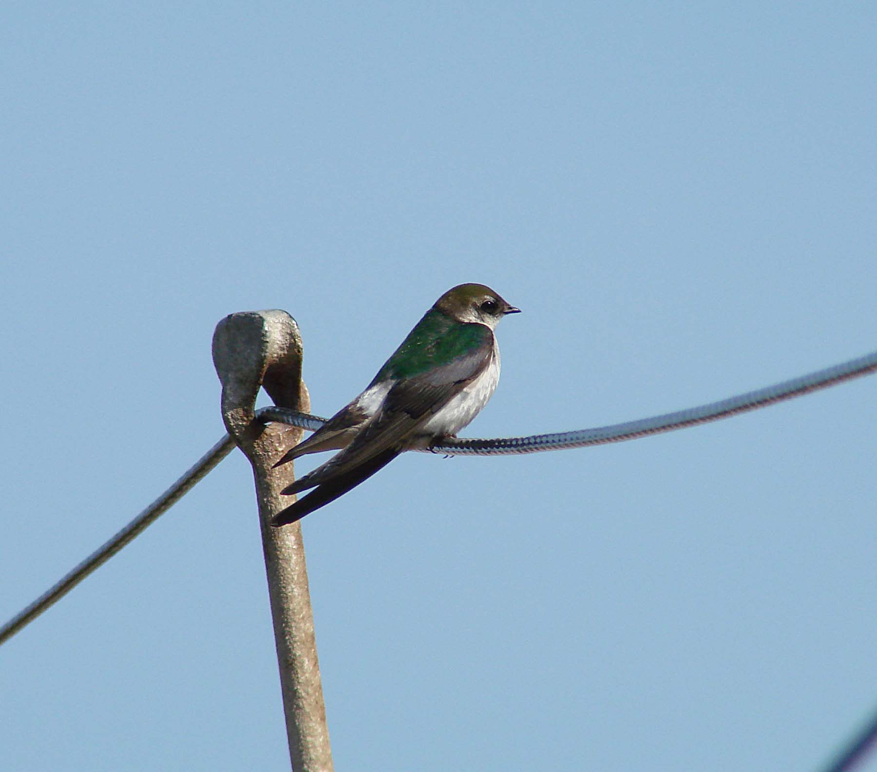 The Violet-green Swallow breeds in western North American from Alaska to Mexico. They winter in Central and northern South America. They nest in cavities in trees or rocks. They are insect eaters.