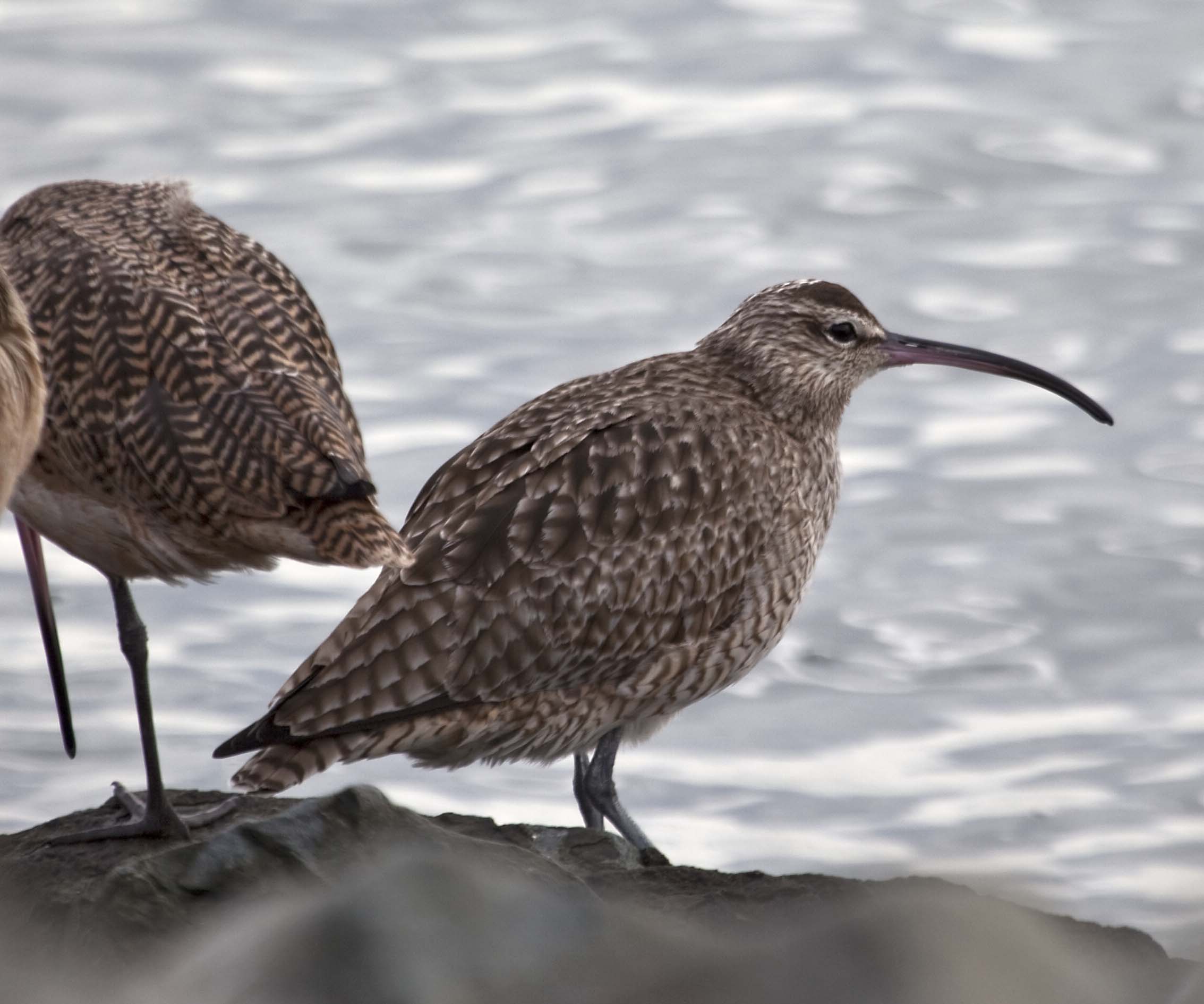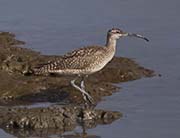 Whimbrels breed in subarctic North America, Europe and Asia and migrate to South America, Africa, south Asia and Australia. They are a large shorebird and have a decurved bill. They also have a small head and a long neck. They do not have an alternate plumage.