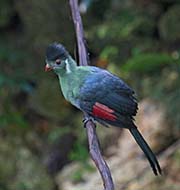 The White-cheeked Turaco is found in Eritrea, Ethiopia and the Sudan in Africa. They mainly eat fruit and occasionally eat insects.