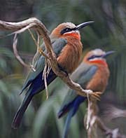 The White-fronted Bee-eater is found in sub Equatorial Africa. They primarily eat bees but will also eat other flying insects.