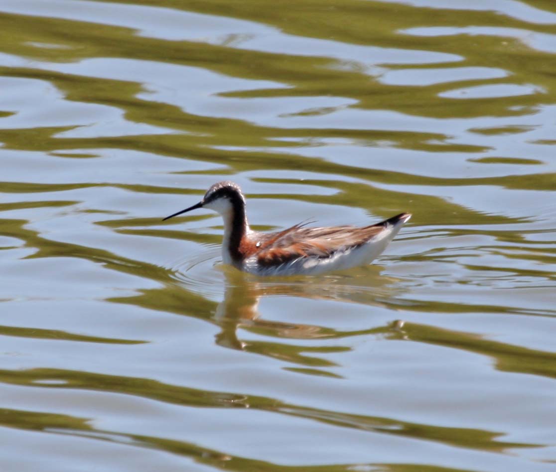 Wilson's Phalaropes are mostly found on fresh water breeds in North America and winters near the Andes in Argentina. They eat aquatic insects and small crustaceans in fresh water and shrimp and brine flies in salt water. They pick small bits of food from the water's surface. Sometimes they will spin in tight circles to create upwellings of food although they do this less than other Phalaropes.