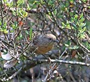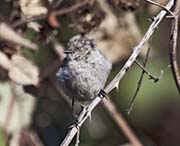Wrentits are year-round residents on the west coast of the United States. They can be difficult to spot because they like dense bushes and shrubs. The Wrentit have pale irises. They mate for life. Diet is insects.