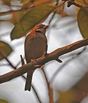 There are six species of Towhees in the U.S. Towhees feed on the ground and show little sexual dimorphism.