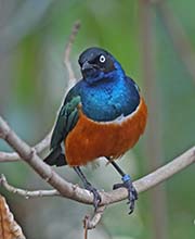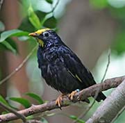 Previous Group: Crows, Jays and Magpies Next Group: Old World Sparrows, Weavers and Allies Starlings, Mynas Starlings & Mynas The word 'mynah' is derived from an Hindi word which is a term of endearment such as 'pet'. Black-collared Starling Cape Glossy Starling Emerald Starling European Starling Golden-breasted Starling Lesser Blue-eared Starling Long-tailed Glossy Starling Metallic Starling Rosy Starling Superb Starling Violet-backed Starling Wattled Starling Bali Myna Common Myna Common Hill Myna Finch-billed Myna Golden-crested Myna Top of Page