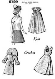 5367, Knit Dress, Panties, Coat and Hat for 11” doll |